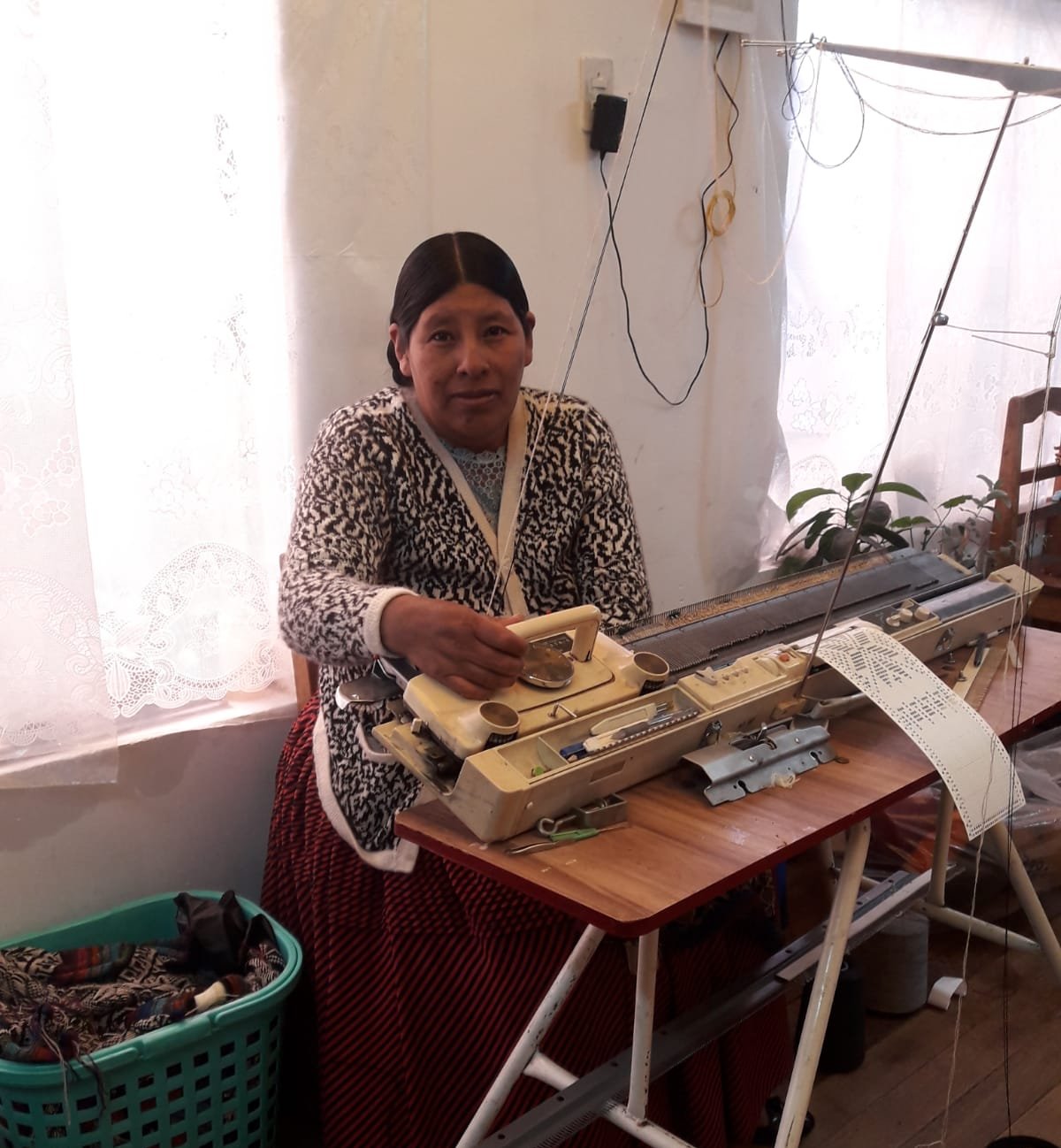 Ha scoperto la sua passione per il lavoro a maglia all'età di 16 anni quando ha imparato a lavorare su una macchina per maglieria a mano. Quando ha incontrato suo marito, gli ha trasmesso questa conoscenza e oggi gestiscono insieme il loro laboratorio, che è direttamente collegato alla loro casa a El Alto. Insieme producono maglieria di alta qualità con grande cura e abilità.